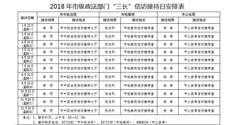 2. 2018年市级政法部门“三长”信访接待日安排表