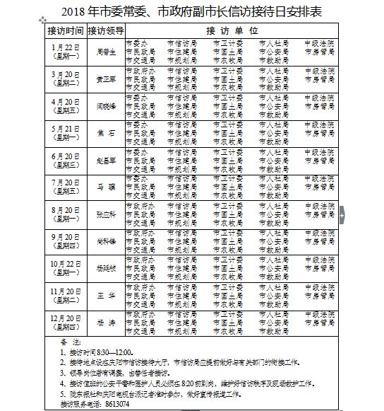 1. 2018年市委常委、市政府副市长信访接待日安排表