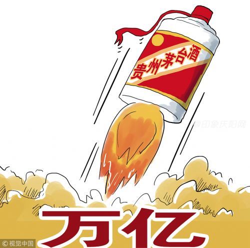 漫画:贵州茅台市值突破一万亿元大关 离中国银行只差一个涨停板,图自视觉中国