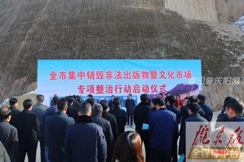 印象庆阳网讯 1月19日,全市集中销毁非法出版物暨文化市场专项整治行动启动仪式在西峰城区生活垃圾填埋场举行,现场集中销毁侵权盗版及非法出版物4.8万多件。