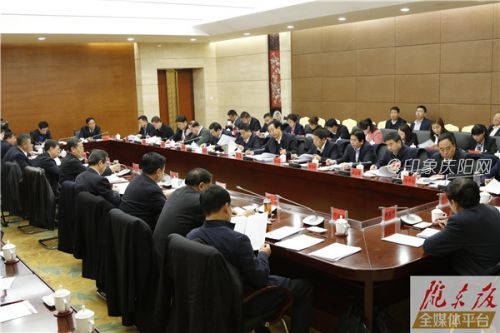 随后,朱涛就贯彻落实省委书记林铎在庆阳代表团审议省政府工作报告时的讲话精神作了安排部署。他指出,省委书记林铎“六个走在前列”的指示要求,既是对全市干部极大的信任、鞭策和鼓舞,也是对庆阳发展极大的重视、关心和期望,是指导我市当前和今后一个时期各项建设和各项事业发展的重要遵循。全市各县(区)、各部门和各级干部要深入学习讲话精神,认真研究“怎么样走在前列”的核心问题,拿出切实可行的具体举措,第一时间把省委、省政府各项决策部署落到实处。要紧盯经济增长这一总体性要求,扭住脱贫攻坚这一底线性工作,聚焦产业培育这一基础性任务,扎实开展“六查三问一细化”活动,着力在增强群众内生动力、打赢脱贫攻坚战上求实效,着力在提升干部能力、转变工作作风上下功夫,推动全市经济社会持续健康稳定发展。