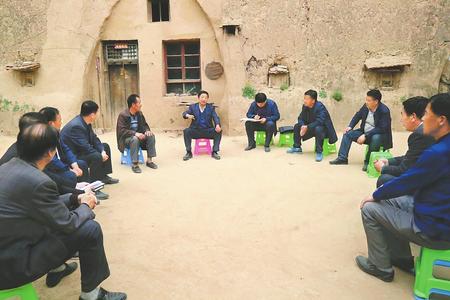宁县盘克镇扶贫干部进村入户,与村干部、贫困户一起商量“一户一策”方案。本报通讯员 张虎帅