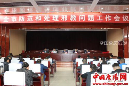 印象庆阳网讯:4月19日,全市防范处理邪教工作会议召开。市委政法委副书记、市委防教办主任樊广森、市公安局副局长任志锋、市委防范和处理邪教成员单位、市公安局、各县(区)防教办主任、各县公安局、西峰、长庆分局、森林公安局业务负责人、业务专干、各乡镇派出所业务专干,共180多人参加会议。会议由市委防教办副主任刘向东主持。