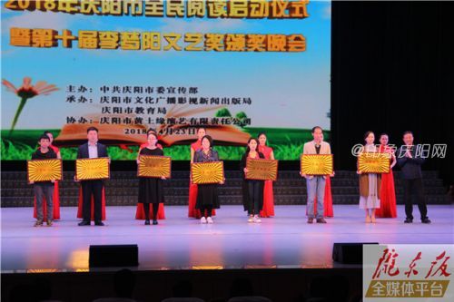 印象庆阳网讯:为全面贯彻党的十九大精神,深入学习习近平新时代中国特色社会主义思想,大力推进全民阅读活动,努力建设“书香庆阳”,4月23日晚,市委宣传部主办的2018年庆阳市全民阅读启动仪式暨第十届李梦阳文艺奖颁奖晚会在市政府礼堂举行。