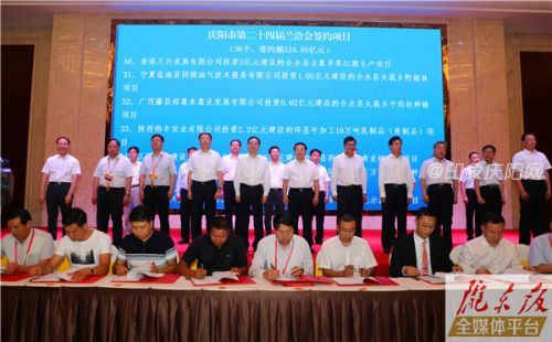 推介会上,庆阳万达广场建设项目、西峰区碧桂园城市综合体项目、镇原县宝士力鑫欣盛大健康城建设项目、合水县怡露田园综合体项目、环县年加工18万吨乳制品(果制品)建设项目,正宁县五顷塬香炉山旅游休闲度假区建设项目、华池县万只湖羊繁殖基地及20万吨玉米饲草仓储中心项目、庆城县虹彩花园建设项目、宁县纳米新技术高科技采油产品生产项目等36个项目成功签约。