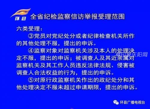 据了解,全省纪检监察信访举报受理范围全面聚焦纪检监察机关的主业主责,明确为“六类受理、三不受理”,体现了有所为有所不为。其中,六类受理:①对党组织、党员违反政治纪律、组织纪律、廉洁纪律、群众纪律、工作纪律、生活纪律等党的纪律行为的检举控告。②对监察对象(监察法规定的六类公职人员)不依法履职,违反秉公用权、廉洁从政从业以及道德操守等规定,涉嫌贪污贿赂、滥用职权、玩忽职守、权力寻租、利益输送、徇私舞弊以及浪费国家资财等职务违法犯罪行为的检举控告。③党员对党纪处分或者纪律检查机关所做的其他处理不服,提出的申诉。