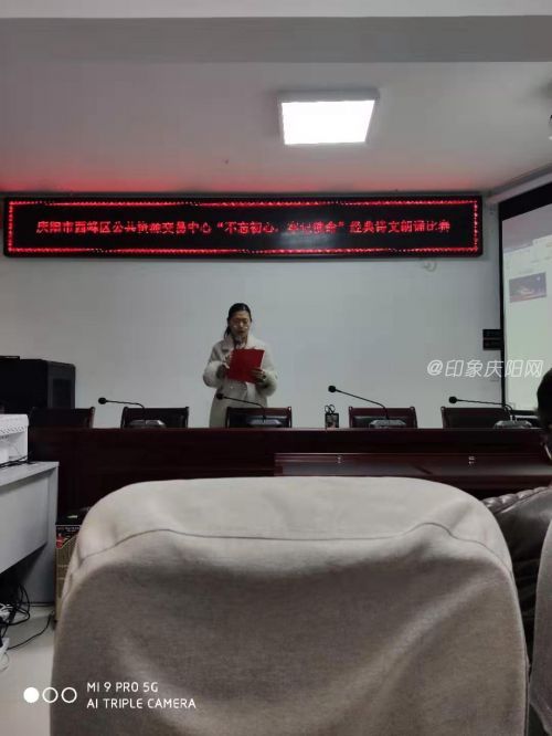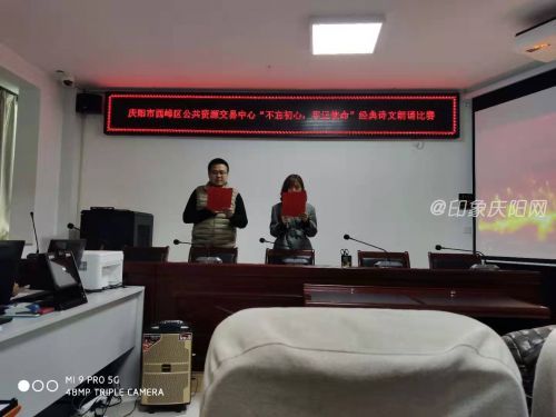 摘要:为了扎实推进“不忘初心,牢记使命”主题教育活动,西峰区公共资源交易中心组织举行红色经典诗文朗诵比赛。这次比赛旨在用好用活庆阳红色文化资源,讲好革命故事、传好南梁精神、赓续红色血脉。