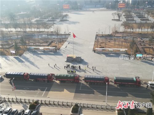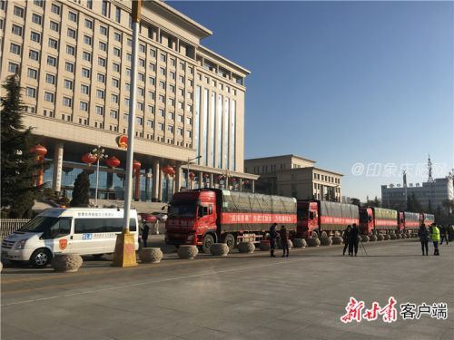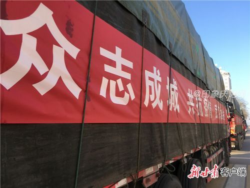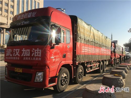 上午9时许,5辆装有庆阳苹果的卡车在西峰区和谐广场集结出发,车辆两侧悬挂着印有“抗击疫情,驰援武汉,甘肃庆阳在行动!”“庆阳老区人民祝愿武汉人民早日打赢疫情防控阻击战!”“‘庆阳苹果’捐赠抗疫一线,传递爱心温暖人间!”“‘庆阳苹果’为武汉加油,为抗疫助力!”“众志成城,共抗疫情,武汉加油!”字样的红色条幅。