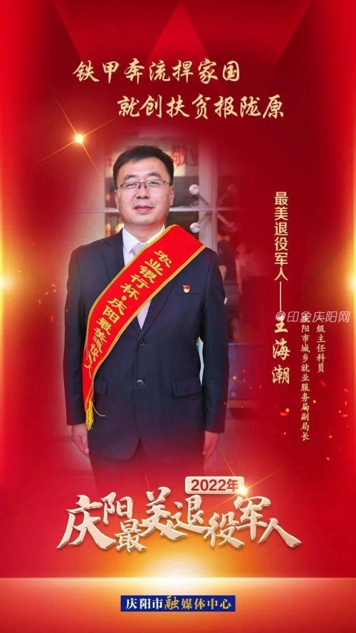 摘要:王海潮,男,1977年9月出生,中共党员,1996年9月入伍,2008年12月退役,荣立三等功3次,现任庆阳市城乡就业服务局副局长、一级主任科员。