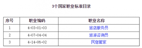 人力资源社会保障部、文化和旅游部共同制定了旅店服务员、旅游咨询员、民宿管家等3个国家职业标准,于近日起施行。