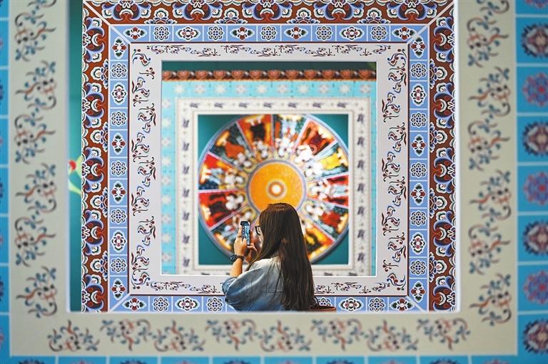 9月21日,参观者在“匠心传承·创意绽放”——非遗及文创精品展上拍照。(记者丁凯)