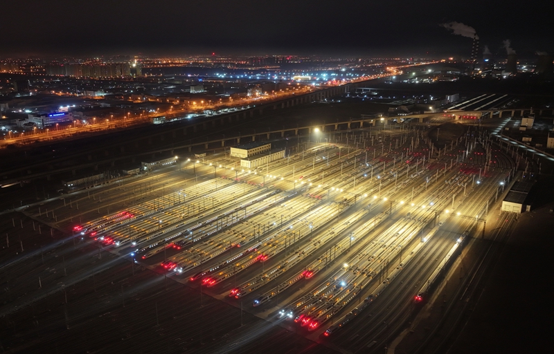2025年1月22日晚,工作人员驾驶送料小车为检修库内的作业人员送去工具和配件。新华社发(许丛军 摄)