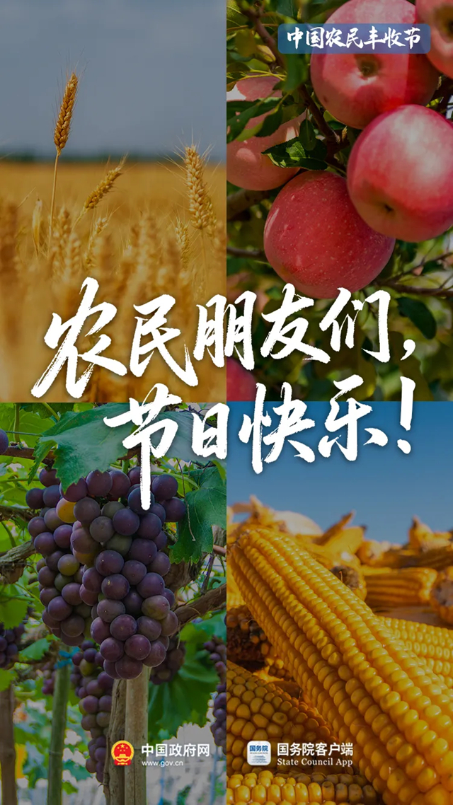 祝全国广大农民朋友节日快乐!