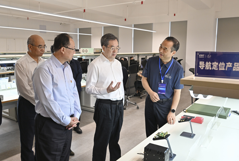 9月23日,中共中央政治局常委、国务院副总理丁薛祥在湖南调研。这是丁薛祥在湖南中电星河电子有限公司调研。新华社记者 殷博古 摄