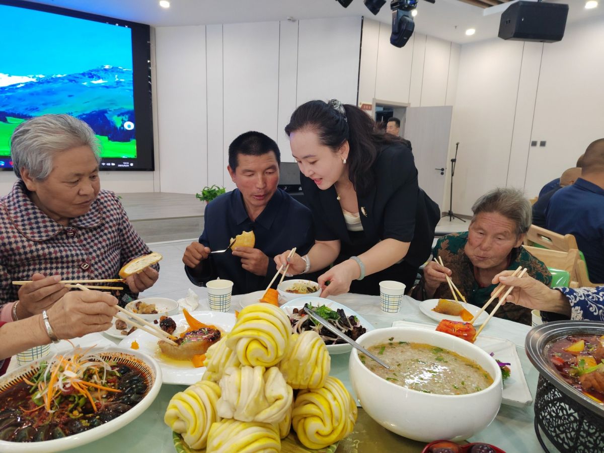 一道道热气腾腾的菜肴端上桌,餐厅里顿时香气四溢。印象家苑中餐店经理杜华亲自为老人们夹上合页饼,小心翼翼地递到每位老人手中。几名服务员穿梭在餐桌间,细心为老人舀汤添茶,还不时俯身询问:“味道怎么样?合不合口味?”