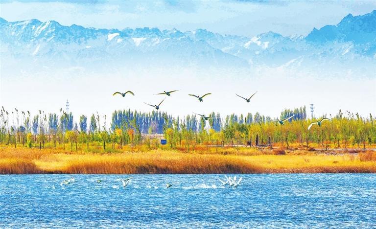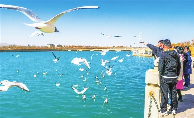 现在一到春天,嘉峪关市就会迎来一大批特殊的“访客”——遗鸥、红嘴鸥、渔鸥成群结队,或翱翔于湛蓝天空,或嬉戏于碧波之上。游客、市民争相前往观赏千鸟齐翔的震撼场景,一幅人与自然和谐相处的美好画卷跃然眼前。