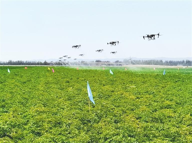 8月下旬,永昌县开展无人机飞防作业(资料图)。
