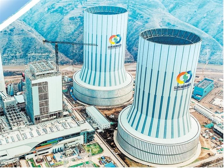 “陇电入鲁”能源战略通道上重要电源点项目—山东能源灵台电厂建设项目施工现场。(通讯员黄蔚林)