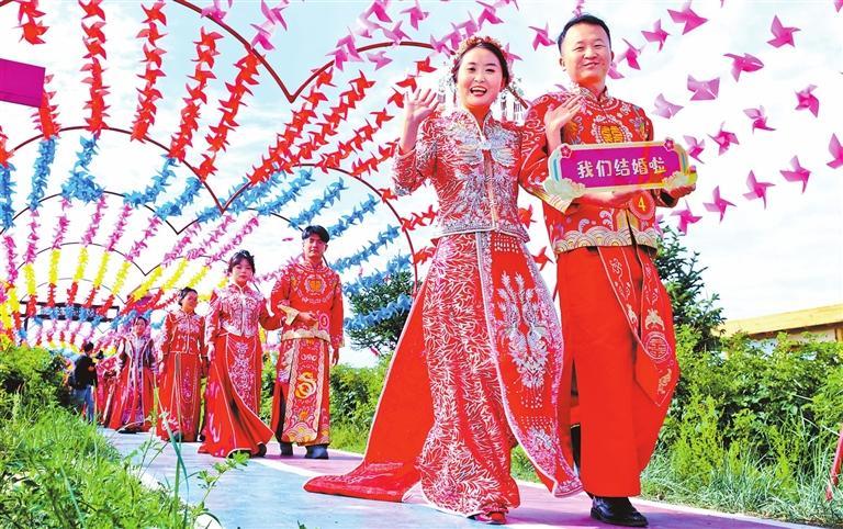 山丹县2025年“我们的节日·七夕”集体婚礼在老军乡玫瑰庄园举行。(通讯员王将)