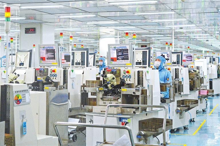 天水华天电子集团员工在集成电路封装线上抓紧生产。(通讯员孙镇)