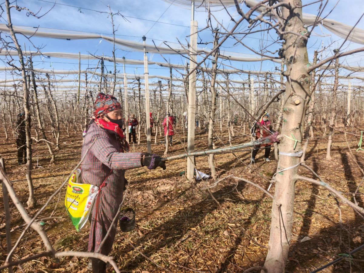 冬季正是调节果树、复壮树势、消灭病菌害虫的最佳时机,冬季果树管理水平质量,不仅直接影响着果树越冬的安全性,而且决定着次年果园果树病虫害发生量的多少,更重要的是直接影响次年果树的长势强弱、产量大小与果实品质的高低。在果树修剪过程中,宁县金农农业扶贫开发有限公司还通过“企业+基地+农户”的产业化经营模式,把生活困难群众纳入到产业发展的链条中来,使他们实现稳步增收。
