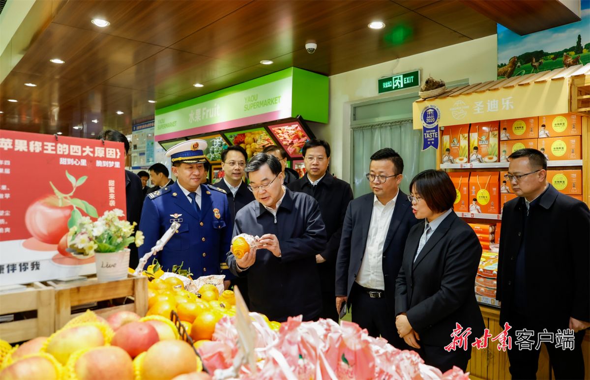 胡昌升还来到超市,详细了解蔬菜、水果、肉蛋、米面油供应及价格情况。他强调,要加强货源组织,做好产销衔接,提供丰富优质的民生商品供给,满足群众节日消费需求。要加强市场监管,扎实做好市场保供稳价工作,守牢食品安全底线,让群众买得放心、吃得安心。要组织开展各类促消费活动,创新多元化、个性化、高品质消费场景,有效激发消费活力。