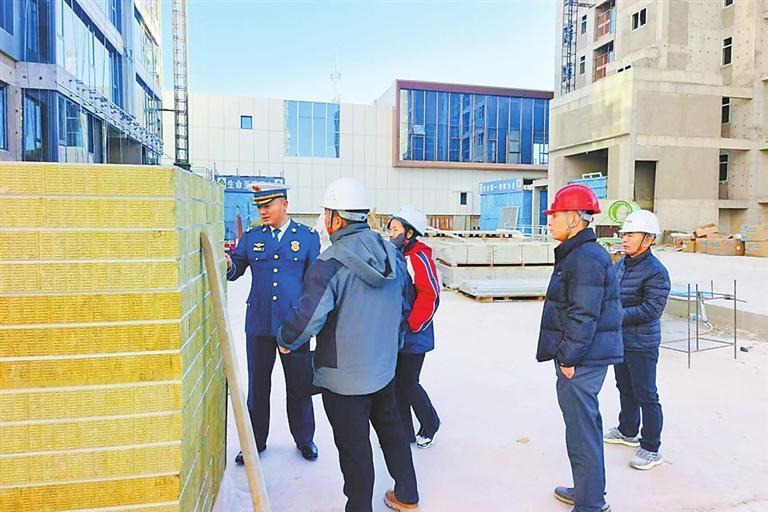 检查组对建筑外墙保温材料开展专项检查。(本文图片由省消防救援总队提供)