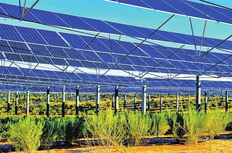 凉州区打造“板上发电、板间经济、板下固沙”的复合生态产业。