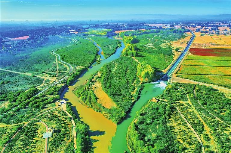 石羊河民勤蔡旗断面,水丰草茂,生机盎然。
