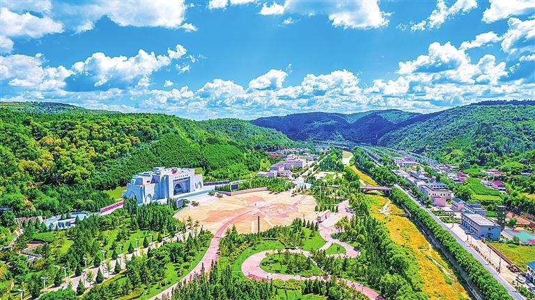蓝天白云下的南梁红色小镇。(刘永刚)