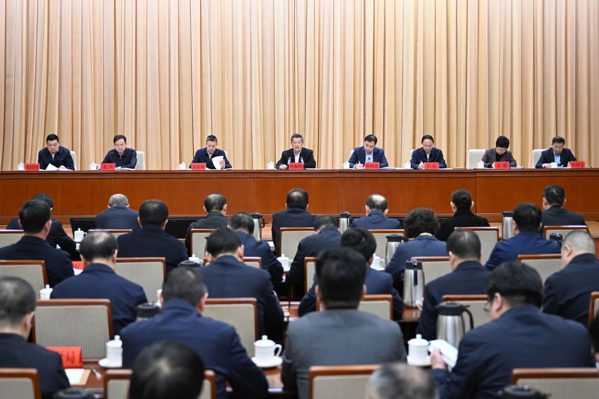2月6日,中央第十四巡视组巡视甘肃省情况反馈意见政府系统整改工作会议在兰州召开,省委副书记、省长任振鹤出席并讲话。(记者盛学卿)