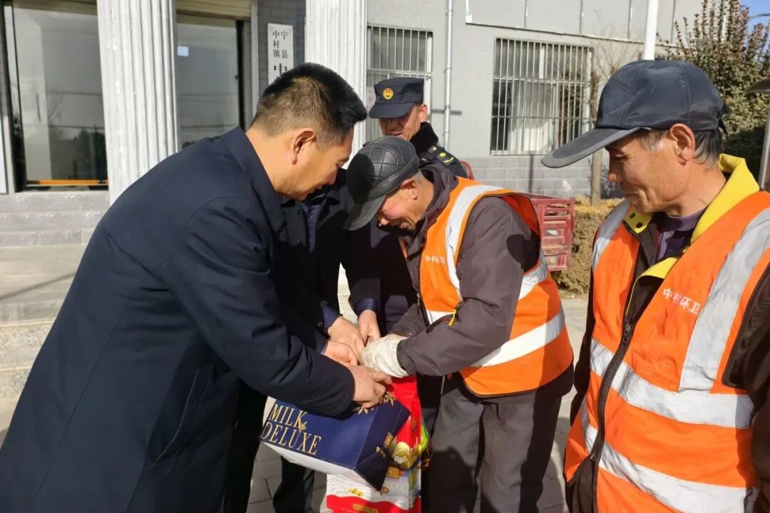 捧着沉甸甸的慰问品,中村镇的公益性岗位人员脸上洋溢着温暖的笑容,他们纷纷表示,新的一年将以更饱满的热情、更务实的行动投入环境整治工作,坚守岗位、不负重托,用心守护街区卫生干净整洁,为中村镇高质量发展贡献力量。此次走访慰问为一线工作人员送上了新春祝福与真切温暖,让大家在寒冬中感受到了组织关怀,激发了公益性岗位人员立足本职、服务群众、奉献中村的工作热情。(宁县融媒记者记者:赵晶晶 通讯员:曹博)