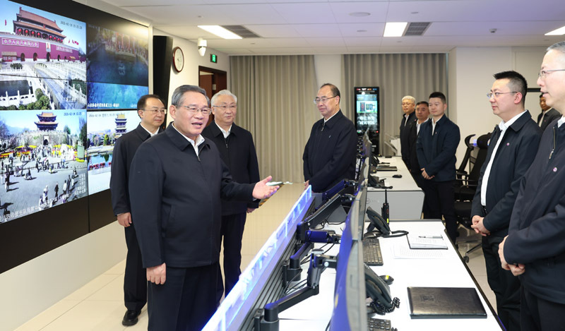 2月14日下午,中共中央政治局常委、国务院总理李强来到应急管理部,检查指导节日期间重点行业和领域安全防范、春运春节服务保障等工作。新华社记者 黄敬文 摄