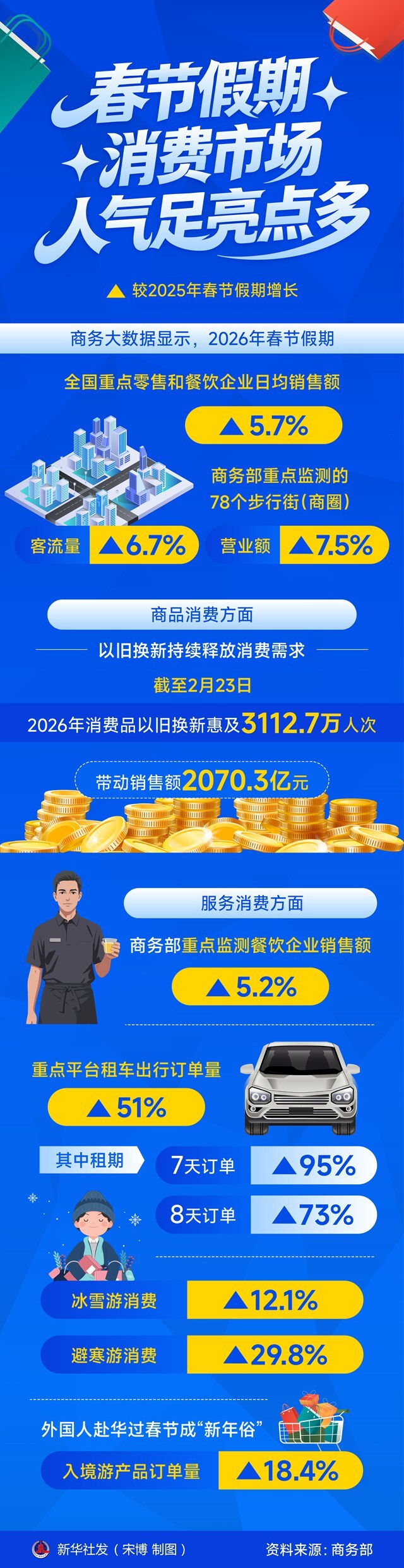 摘要:记者2月24日从商务部获悉,春节假期,各地商务部门深入组织开展“乐购新春”春节特别活动,加力实施消费品以旧换新、有奖发票等政策,持续释放假日消费潜力。