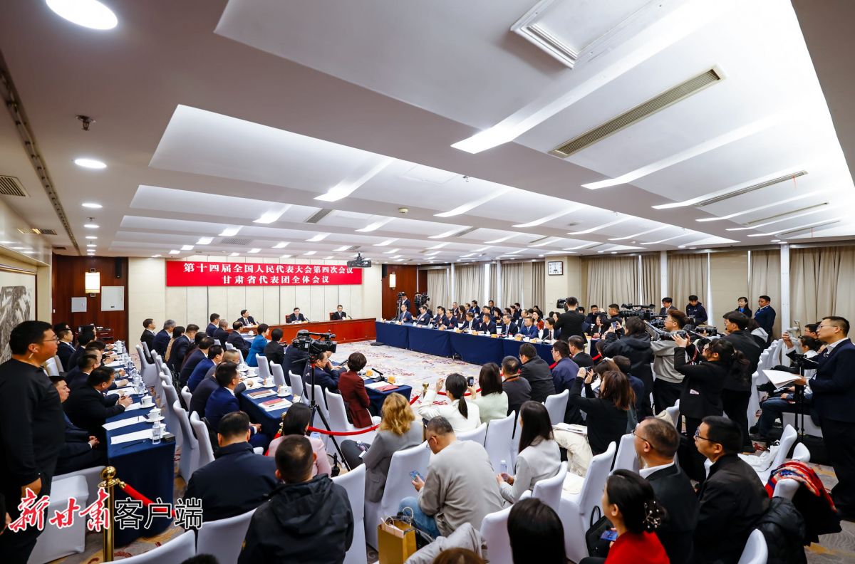十四届全国人大四次会议甘肃代表团3月7日上午在驻地举行开放团组活动,审查计划报告和草案、预算报告和草案,会议向境内外媒体记者开放。