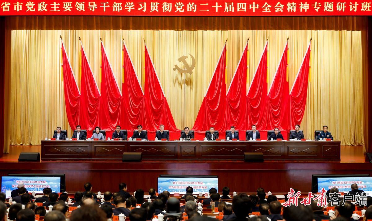 省市党政主要领导干部学习贯彻党的二十届四中全会精神专题研讨班3月17日上午在省委党校(甘肃行政学院)开班,省委书记、省人大常委会主任胡昌升出席开班式并作辅导报告。他强调,要以习近平新时代中国特色社会主义思想为指导,深入学习贯彻党的二十届四中全会和全国两会精神,全面贯彻落实习近平总书记在省部级主要领导干部学习贯彻党的二十届四中全会精神专题研讨班开班式上的重要讲话和视察甘肃重要讲话重要指示精神,完整准确全面贯彻新发展理念,树立和践行正确政绩观,加力推动“十五五”时期全省高质量发展,加快建设幸福美好新甘肃、不断开创富民兴陇新局面,奋力谱写中国式现代化甘肃篇章。