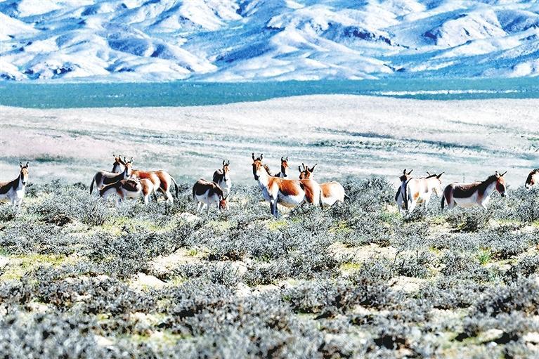 肃北县持续加大生态修复投入,持续改善生态环境,区域生态系统得到整体修复,野生动物种群数量显著增长。如今,走进肃北县祁连山国家公园盐池湾片区的草原,远处的雪山巍峨耸立,近处的藏野驴、岩羊、鹅喉羚等生灵自在栖息,人与自然和谐共生的画面美不胜收。