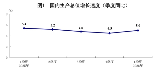 2025年各季度及2026年一季度GDP环比增速分别为1.1%、1.1%、1.1%、1.2%和1.3%。